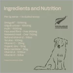 Flax seed fibre, seaweed meal, DHA gold, oligofructose, chicory inulin root, natural vitamin E, taurine, vitamin C, organic zinc, beta carotene, vitamin A, vitamin D.